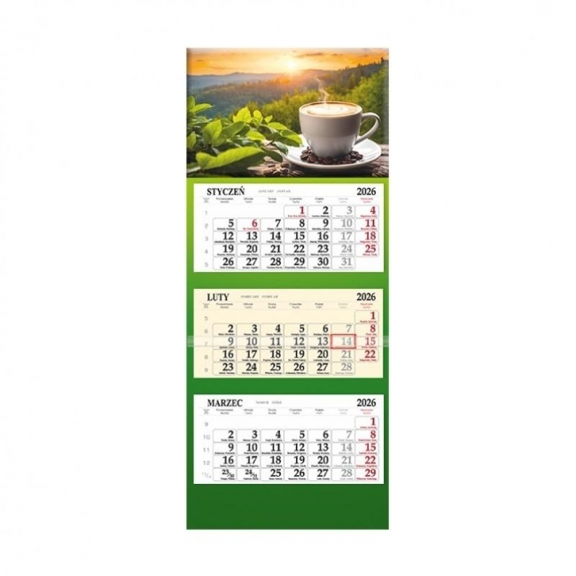 Opis: Kalendarz 2026 trójdzielny Kawa