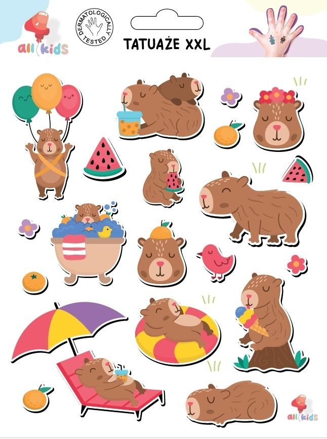 Nazwa: Tatuaże zmywalne dla dzieci Wypoczęta Kapibara XXL