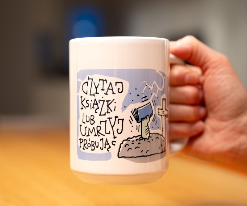 Kubek dla tych, co nawet z grobu wyciągną książkę! Idealny kompan na herbatę, kawę i literackie bitwy - czytasz, czy giniesz próbując. Oficjalny kubek WILQ