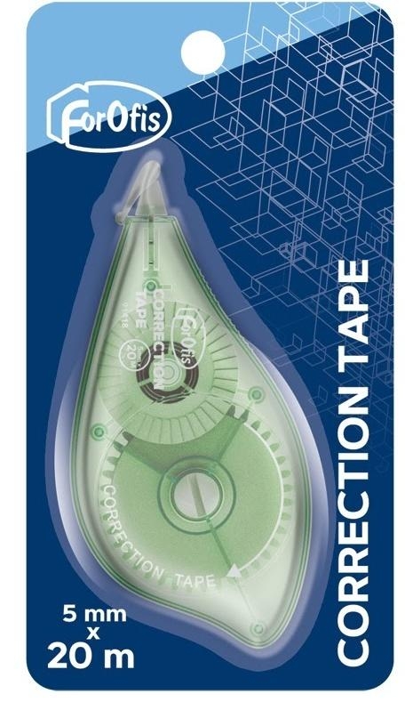 Korektor w taśmie, szerokość 5 mm, długość 20 metrów. Ergonomiczny kształt obudowy dopasowany do dłoni. Wysokiej jakości taśma korekcyjna odporna na zerwanie z idealnie przylegającą do powierzchni papieru warstwą korygującą, po której można pisać bezpośrednio po zastosowaniu. Do użytku na większości rodzajów papieru. Przezroczysta obudowa pozwala śledzić pozostałą ilość taśmy korygującej. Estetycznie zapakowany w twardy blister. Obrotowa końcówka pozwala używać go w dwóch płaszczyznach.