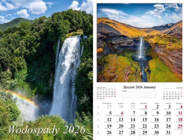 Nazwa: Kalendarz 2026 ścienny Wodospady