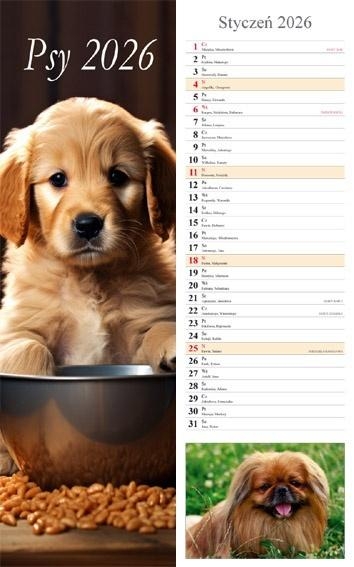 Opis: Kalendarz 2026 ścienny pasek Psy