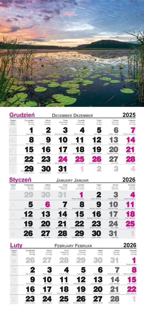 Szczegóły: Kalendarz 2026 ścienny trójdzielny Jezioro