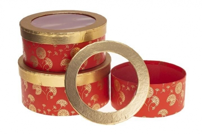 Szczegóły: Pudełko Flower Box 3szt czerwony ROZETTE