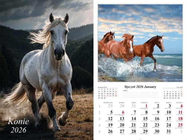 Opis: Kalendarz 2026 ścienny Konie