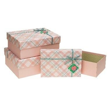 Pudełko prostokątne z kokardą 3szt różowy ROZETTE