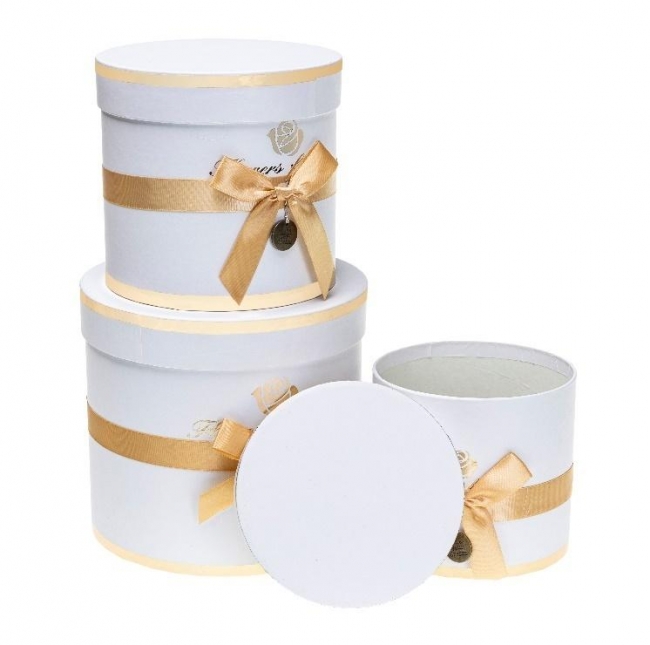 Szczegóły: Pudełko Flower Box z kokardą 3szt biały ROZETTE