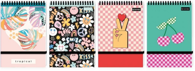 Fascynujący design - Okładka każdego notatnika ozdobiona jest modną grafiką co nadaje mu unikalnego charakteru. Miękka matowa oprawa . Czarna spirala dodaje notatnikom eleganckiego wykończenia.
