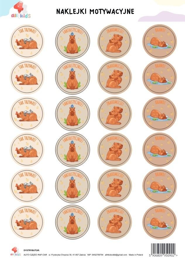 Nazwa: Naklejki motywacyjne A4 Kapibara motywiara