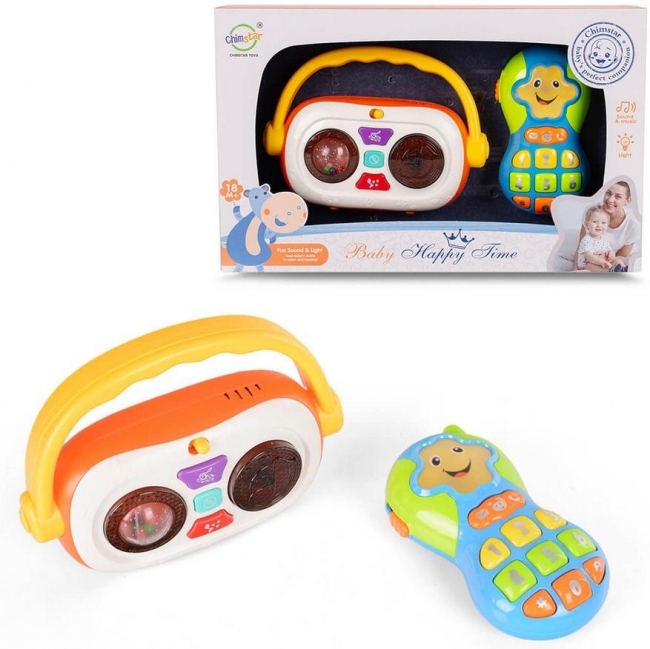Zarówno telefonik jak i radio posiada duże kolorowe przyciski, dzięki czemu maluch bez problemu będzie sobie mógł je przełączać. Zabawka posiada także efekty świetlne, które przykuwają uwagę dziecka. Zabawka posiada wgrane proste melodie oraz odgłosy zwierzątek.