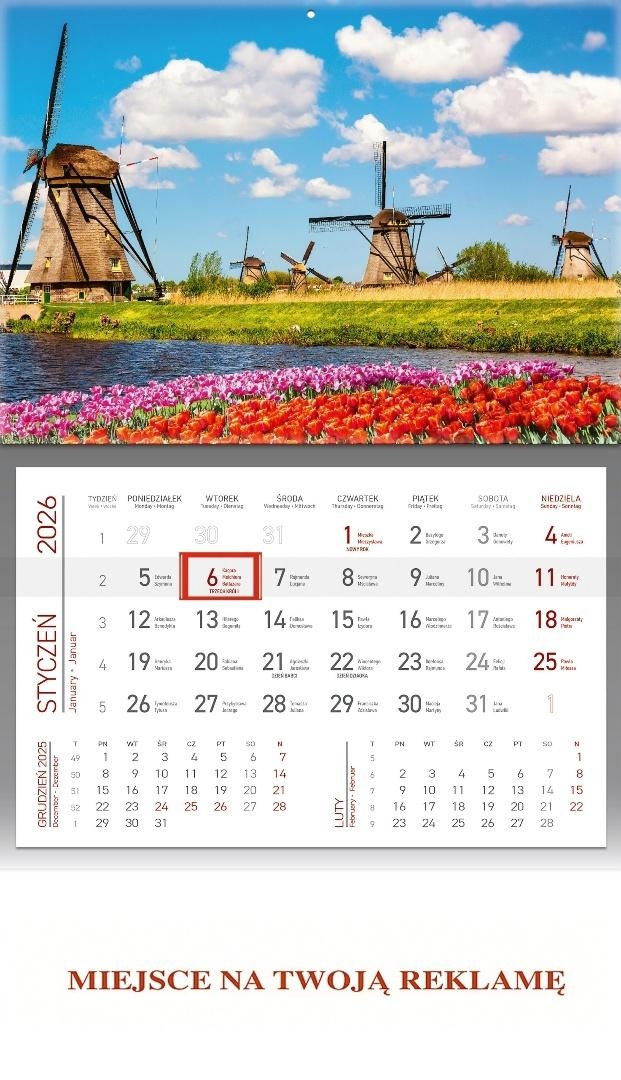Szczegóły: Kalendarz 2026 ścienny jednodzielny Wiatraki