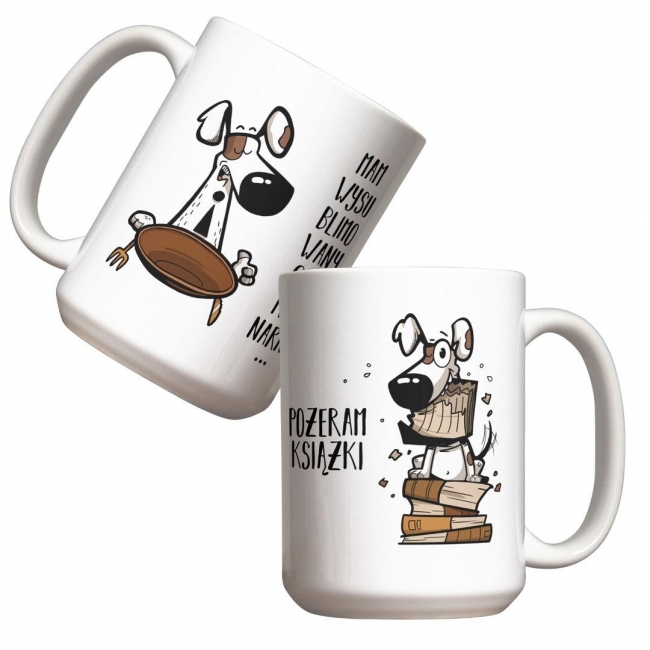 Wysublimowany gust literacki może iść w parze z ogromnym apetytem na dobre napoje! Skoro tak, to warto zawsze mieć pod ręką coś dobrego do czytania i do popijania. Duży zapas książkowej przepitki przygotujesz właśnie w tym kubku! Pojemność: 440ml Wysokość: 120 mm Średnica: 85 mm Materiał: ceramika