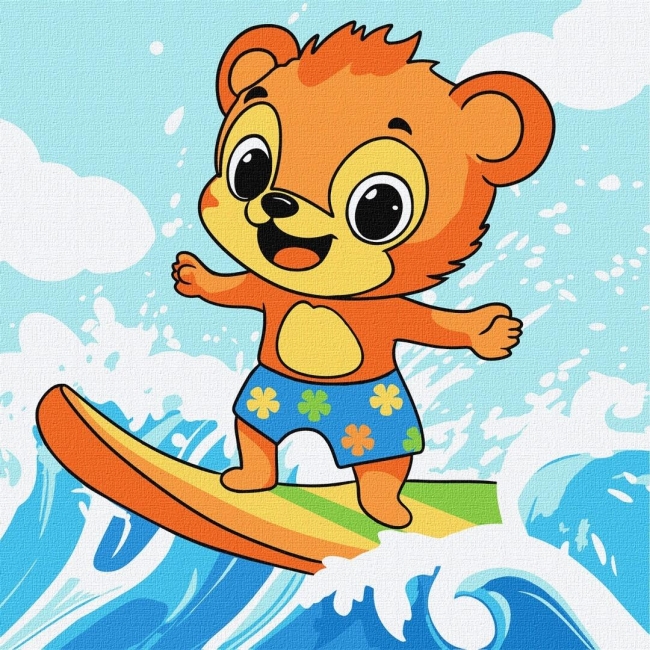 Opis: Malowanie po numerach - Lato.Niedźwiedź łapie falę