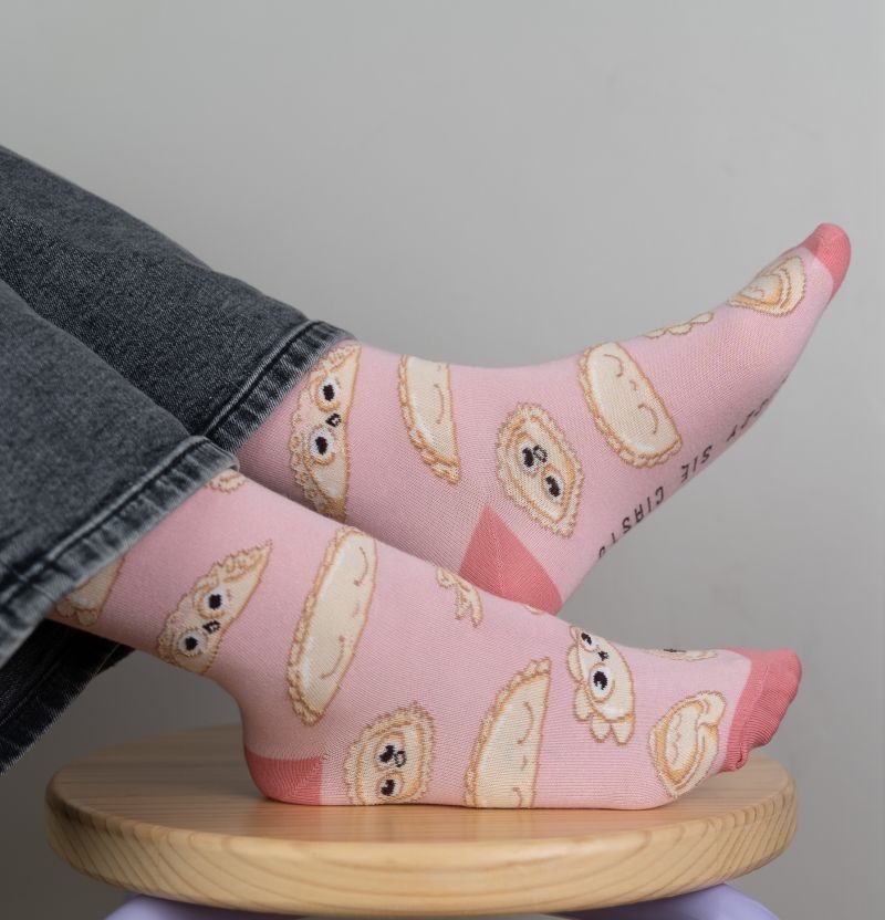 Wyjątkowy design sprawia, że te skarpetki będą idealnym prezentem dla każdego fana kuchni polskiej lub oryginalnych dodatków. Wyraź swoją miłość do pierogów od stóp do głów – dosłownie!