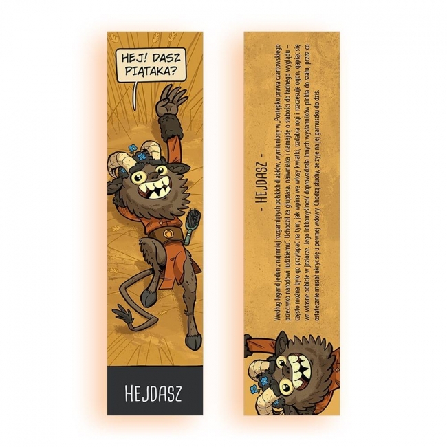 Zakładka do książek, dla zainteresowanych diabłami słowiańskimi i lokalnymi wierzeniami. Karton ozdobny perłowy 300g, sztywny, metaliczno-srebrny połysk Wymiary: 50x200mm