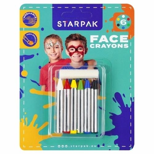 Kredki do malowania twarzy, ciała, 6 kolorów plus akcesoria STARPAK. Kredki w 6 kolorach: żółta, niebieska, biała, czarna, zielona, czerwona, kredki łatwo zmywalne, bezpieczne(przed użyciem zapoznaj się z opisem produktu znajdującym się na opakowaniu!).Dzięki temu zestawowi kreatywność dziecka nie zna granic! Kredki z pewnością spełnią oczekiwania. Zawartość zestawu: 6x kredka do malowania twarzy, 1x gąbeczka. Wymiary opakowania ( wys. x szer. x gł.) {cm} 18x14x1. Waga opakowania (kg.) 0,04 kg. Nie odpowiednie dla dzieci poniżej 3 lat. Pakowane na blistrze. Pakowanie iner 12 szt. Karton 144 szt.