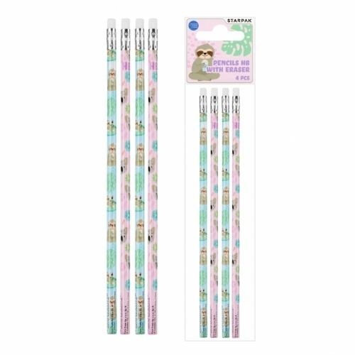 Ołówek nie łamie się podczas strugania, a gumka nie brudzi, ołówki to podstawowy produkt podczas nauki w szkole (rysowanie, matematyka, pisanie), łatwe w struganiu, nie łamią się, nie brudzą, uniwersalna twardość HB, każdy ołówek wyposażony w gumkę do mazania. Zestaw 4 ołówków z gumką z kolekcji STARPAK z grafiką w Leniwce i misie Koala. Każdy ołówek zdobiony kolorową grafiką. Wykonany z trwałego drewna, zapewnia komfort rysowania i pisania. Służy nie tylko do rysowania i szkicowania, ale jest również niezbędny podczas lekcji matematyki, do nauki pisania, do robienia notatek na marginesach książek lub zeszytów. Dlatego tak ważna jest jego jakość. Dzięki wysokiej jakości grafit nie sypie się, nie brudzi i nie kruszy. Twardość HB sprawia, że ołówki STARPAK są uniwersalne i mogą być wykorzystywane zarówno do pisania, jak tez rysowania. Zapoznaj się również z innymi produktami STARPAK! Zawartość opakowania: 4 szt. ołówków z gumką. Wykonane z odpornego, nie łamiącego się podczas strugania grafitu. Wymiary/waga: wymiary produktu (dł.)[cm]: 19 cm, wymiary opakowania (wys. x szer. x gł.)[cm]: 25x5x1, waga produktu bez opakowania 1szt.[kg]: 0,01 kg, waga produktu w opakowaniu [kg]: 0,02 kg. Produkt przeznaczony dla dzieci w wieku: 3+. Ołówki pakowane w folijkę z zawieszką.