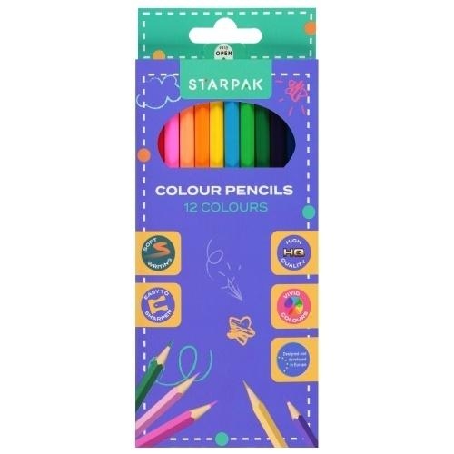 Wysoka jakość rysików, najbardziej podstawowe przybory plastyczne w przedszkolu i szkole, żywe i intensywne kolory, łatwe w struganiu, nie łamią się, nie brudzą, pakowane w pudełko z systemem easy open dzięki, któremu można je łatwo otworzyć i potem zamknąć. Komplet 12 kredek STARPAK w kartonowym pudełku z serii School. Kredki to najbardziej podstawowe przybory plastyczne. Wykorzystywane podczas zabawy i nauki w domu, przedszkolu i szkole. Wszystkie kredki STARPAK mają żywe kolory, dzięki czemu tworzone prace będą zachwycały intensywnością i nasyceniem barw. Kredki STARPAK są łatwe w struganiu i nie łamią się, co jest bardzo ważne, szczególnie dla młodszych dzieci. Dzięki tym kredkom można precyzyjnie rysować kształty i kontury oraz kolorować. Zmieniając nacisk można uzyskać bardziej lub mniej intensywny kolor. Zapoznaj się również z innymi produktami STARPAK z serii School! Zawartość opakowania: 12 kredek ołówkowych w 12 kolorach. Kredki wykonane z kolorowanego węgla drzewnego (grafit) w drewnianej osłonce. Wymiary/waga: wymiary produktu (dł.)[cm]: 18 cm, wymiary opakowania (wys. x szer. x gł.)[cm]: 21x9x1, waga produktu bez opakowania 1 szt. [kg]: 0,01 kg, waga produktu w opakowaniu [kg]: 0,07 kg. Produkt przeznaczony dla dzieci w wieku: 3+. Kredki pakowane w kartonik z systemem Easy Open.