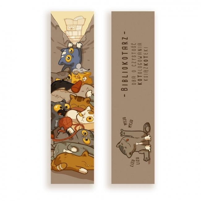 Oto strażnik każdej biblioteki, który dba o porządek i... kotologiczną czystość wśród książkowych zbiorów. Czyż te kocie łapki i figle nie są urocze? Z taką zakładką Twoje czytanie stanie się jeszcze bardziej kociarskie i pełne ciepła. Karton ozdobny perłowy 300g, sztywny, metaliczno-srebrny połysk Wymiary: 50x200mm