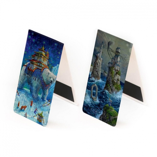 Zakładka magnetyczna z dwoma obrazami wybitnego malarza Rocha Urbaniaka! Poznajcie Nagarkot oraz Inne Brzegi. Zaokrąglone rogi, papier kreda 350 g, folia zabezpieczająca błysk, folia magnetyczna na kawałku zakładki