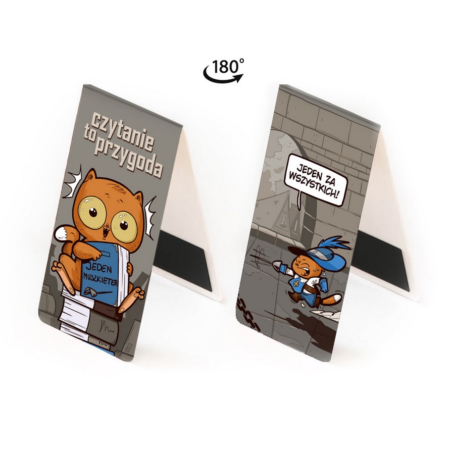 Jeden za wszystkich! Nasz kot Muszkieter przypomina o przygodach! Magnetyczna zakładka do książki, która zatrzyma dla Ciebie czas i pozwoli wrócić do niego w każdej chwili.