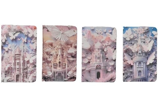 Odkryj magiczną kolekcję notesów, która przeniesie Cię w baśniową krainę. Przedstawiamy cztery unikalne wzory, każdy z nich ozdobiony misternymi ilustracjami eterycznych zamków otoczonych rojem delikatnych motyli. Pastelowe barwy i eteryczny design sprawiają, że każdy notes to małe dzieło sztuki, idealne dla każdego, kto ceni sobie piękno i funkcjonalność. Notesy doskonale sprawdzą się do codziennych notatek, szkiców czy prowadzenia dziennika, dodając odrobinę magii do każdego dnia. Sprzedawane pojedynczo, co pozwala na skompletowanie ulubionych wzorów, dostępne są w opakowaniach zbiorczych po 24 sztuki. Cena dotyczy 1 sztuki.