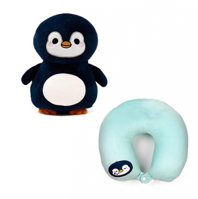 Opis: Poduszka podróżna i pluszowa zabawka 2w1 Pingwin