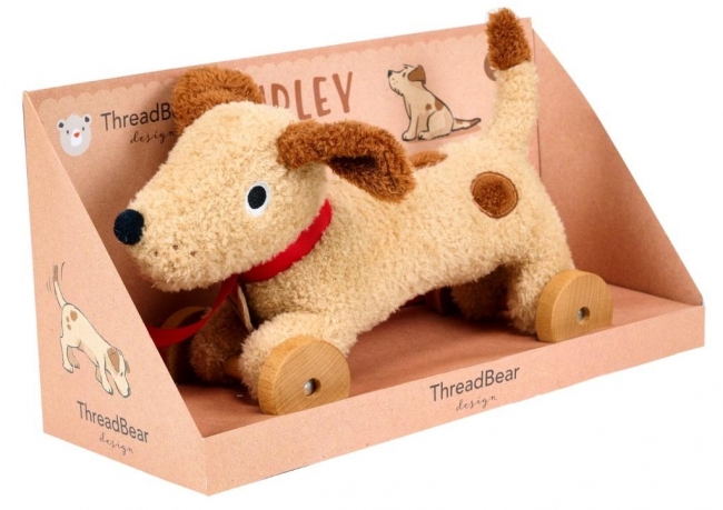 Piesek na kółkach do ciągnięcia - Dudley, ThreadBear Design Uroczy piesek, którego pokocha każde dziecko! Dudley to uroczy piesek o wyjątkowo miękkim i miłym w dotyku futerku. Ma czerwoną obrożę z plakietką ze swoim imieniem oraz smycz w tym samym kolorze. Długość smyczy można regulować. Piesek ma elastyczne ciało i jest idealny do noszenia i tulenia. Kółka zrobione są z certyfikowanego drewna. Zapakowany jest w ozdobne "otwarte" pudełko, więc jest to idealny pomysł na prezent dla malucha. ~~~ Brytyjska marka ThreadBear Design to najwyższej jakości produkty dla dzieci, charakteryzujące się oryginalnym stylem i wzornictwem. W asortymencie marki ThreadBear Design znajdziecie mięciutkie lalki, materiałowe książeczki i tkane przytulanki dla maluszków (już od urodzenia) oraz piękne fartuszki i akcesoria tekstylne. Marka ThreadBear Design przywiązuje dużą wagę do bezpieczeństwa swoich produktów; wszystkie materiały użyte przy produkcji oraz sam proces produkcji spełniają wymagane normy bezpieczeństwa i wysokie standardy etyczne. Produkt przeznaczony jest dla dzieci powyżej 3 r.ż. Wymiary zabawki: 24x10x18cm