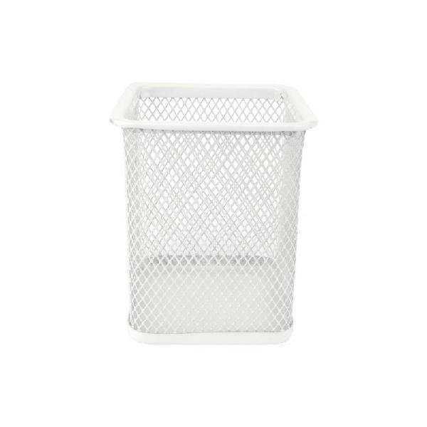 Metalowy kubek na biurko służący do przechowywania artykułów piśmiennych. Pomaga utrzymać porządek w miejscu pracy. Wykonany z metalowej siatki pokrytej perłowym lakierem. Istnieje możliwość skompletowania całego zestawu biurowego, składającego się z kubka, przybornika, kosza i szufladek nabiurkowych w jednolitej wersji kolorystycznej. Wysokość: 100 mm, Szerokość: 80 mm, Długość: 80 mm
