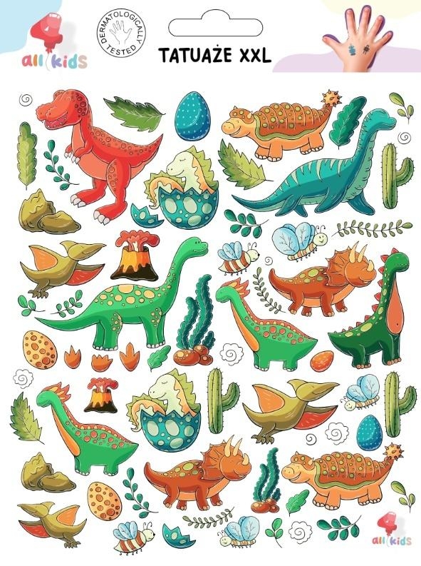 Nazwa: Tatuaże zmywalne dla dzieci Dinozaury XXL
