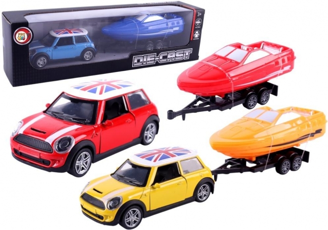 Nazwa: Samochód z łodzią na przyczepie metal mix