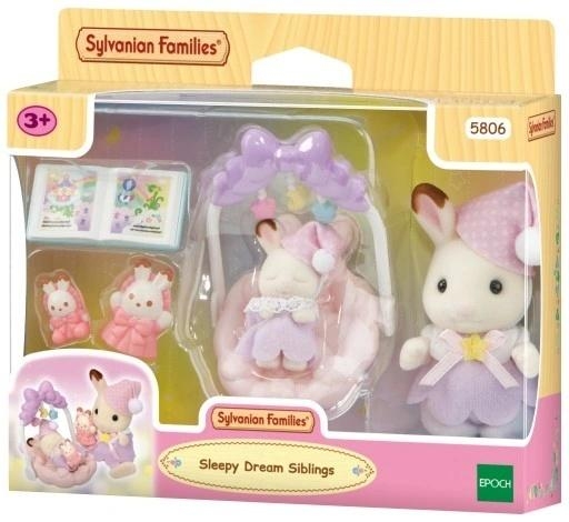 Rodzeństwo z rodziny królików z czekoladowymi uszami Sylvanian Families jest już gotowe do snu. Zestaw zawiera Freyę i jej malutką siostrę Florę. Mała Flora zamknęła już oczy i śni jakiś słodki sen. Figurki mają na sobie śliczne fioletowe piżamy i czepki nocne. W zestawie znajdują się dwie przytulanki do snu oraz książka z baśniami, a także łóżeczko dziecięce z pałąkiem w kształcie kokardy i zabawkami w kształcie gwiazd i księżyca. Zabawki Sylvanian Families rozwijają wyobraźnię i zachęcają dzieci do zabawy w odgrywanie ról. Zabawa z figurkami Sylvanian Families rozwija kreatywność i uczy emocji poprzez tworzenie i opowiadanie historii na podstawie codziennych doświadczeń i obserwacji świata. Zabawki Sylvanian Families tworzy japońska firma Epoch od 1985 roku. Wyróżnia je najwyższa jakość oraz wyjątkowa dbałość o szczegóły. Figurki Sylvanian Families mają ruchome główki, rączki i nóżki. Polecamy od 3 roku życia.