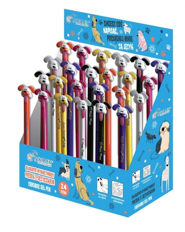 Opis: Długopis wymaz piesek z językiem nieb (24szt)