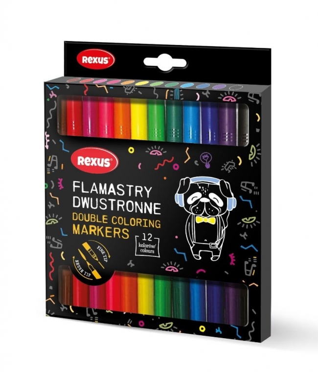 Opis: Mazaki dwustronne 2w1 12 kolorów