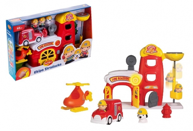 Alarm! Dzielna ekipa strażacka melduje gotowość do misji ratunkowej. Przeżyj wspaniałą przygodę z zestawem figurek do zabawy w odgrywanie ról. Poza strażakami i ich dzielnym pieskiem ratownikiem, znajdziesz tu stację strażaków, wóz strażacki, helikopter, a nawet hydrant. Stacja wyposażona jest w przycisk, uruchamiający lampkę i sygnał alarmowy. Specjalna winda umożliwia strażakom szybki zjazd na dół