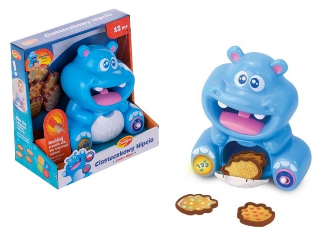 Kiedy Dziecko naciśnie na stópkę rozpocznie zabawę w liczenie oraz usłyszy zabawne dźwięki i melodie. Nakarm Hipcia i policz ile jest w stanie zjeść ciasteczek. Po wyjęciu ciasteczek z brzuszka rozpoczynamy zabawę od nowa.