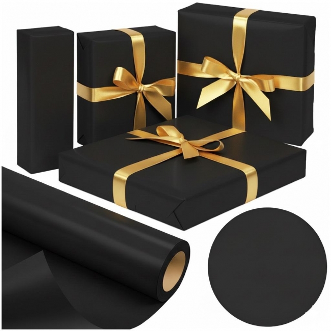 Papier ozdobny Czarny Elegancki to synonim elegancji i prostoty - idealny wybór dla osób ceniących nowoczesny, wyrafinowany styl. Głęboki czarny kolor i delikatny połysk sprawiają, że każdy prezent zapakowany w ten papier wygląda wyjątkowo - z klasą i charakterem.