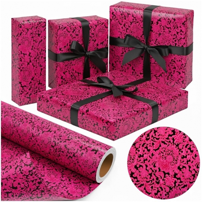 Papier ozdobny Różowy Barok to połączenie klasycznego, bogatego wzoru z nowoczesnym, odważnym kolorem. Intensywny róż na głębokim tle tworzy niezwykle efektowną kompozycję, która nadaje każdemu prezentowi charakteru i wyjątkowego stylu. Idealny do pakowania eleganckich prezentów, dekoracji, rękodzieła i kreatywnych projektów DIY.