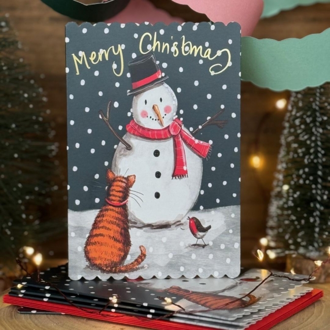 Opis: Karnet Święta Kot i bałwan