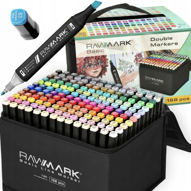 MARKERY ALKOHOLOWE 168 sztuk marki RAWMARK Nie przegap okazji i zamów już teraz zestaw 168 markerów alkoholowych w SUPER CENIE! Ten zestaw z pewnością urozmaici Twoją pracę i pozwoli na tworzenie niezwykłych dzieł sztuki ! ZALETY MARKERÓW DWIE KOŃCÓWKI RÓŻNORODNE KOLORY ORYGINALNE PUDEŁKO DOSKONAŁA PIGMENTACJA ( tusz super INK) WSPARCIE w social mediach (Instagram, Discord) Wysoka Pigmentacja i Specjalny Tusz super INK Markery alkoholowe w zestawie 168 sztuk wykorzystują technologię super INK, która zapewnia intensywną pigmentację i trwałe efekty. Z uwagi na mocne nasycenie tuszu, mogą one przebijać przez zwyczajny papier. Aby uniknąć tego efektu, zaleca się stosowanie specjalnego papieru przeznaczonego dla markerów alkoholowych, co zapewni optymalną jakość rysunków. Malowanie na Tkaninach i Ścianach Markery te są również przystosowane do malowania na ubraniach oraz ścianach, oferując kreatywne możliwości w dekoracji i personalizacji. Chociaż tusz może być trwały na tkaninach, nie gwarantujemy, że zostanie całkowicie usunięty podczas prania.