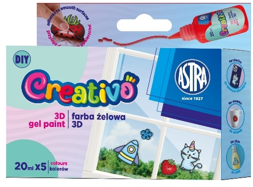 - Odkryj kreatywną zabawę z farbami żelowymi, dzięki którym możesz tworzyć elastyczne naklejki i ozdabiać nimi szkło, porcelanę, lustra, płytki oraz powierzchnie z tworzyw sztucznych.