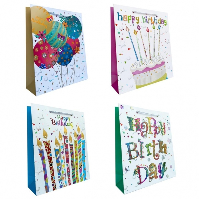 Torebka prezentowa urodzinowa L metaliza mix
