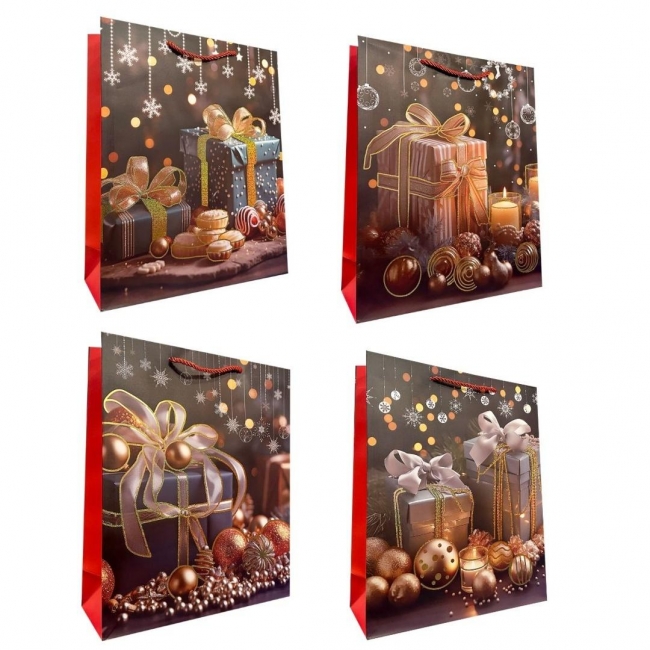Świąteczna torebka prezentowa (210 g) to szybki i efektowny sposób na eleganckie zapakowanie upominku. Mocny papier i wygodne uchwyty gwarantują trwałość, a stylowe motywy świąteczne sprawiają, że prezent od razu wygląda wyjątkowo.