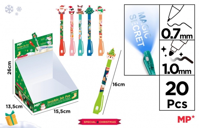 Druga końcówka: niewidoczny tusz (bezbarwny, szpiegowski tusz) ze zdobioną figurką na skuwce.