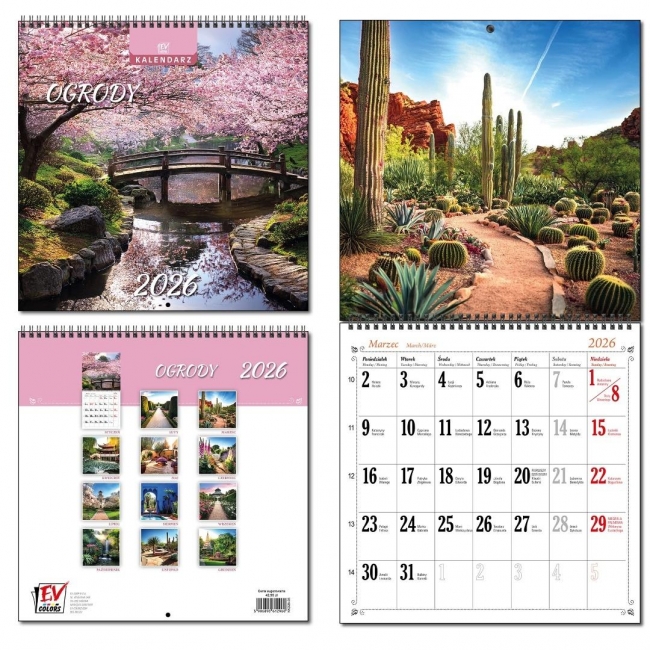 Szczegóły: Kalendarz 2026 30x60 13 planszowy Ogrody