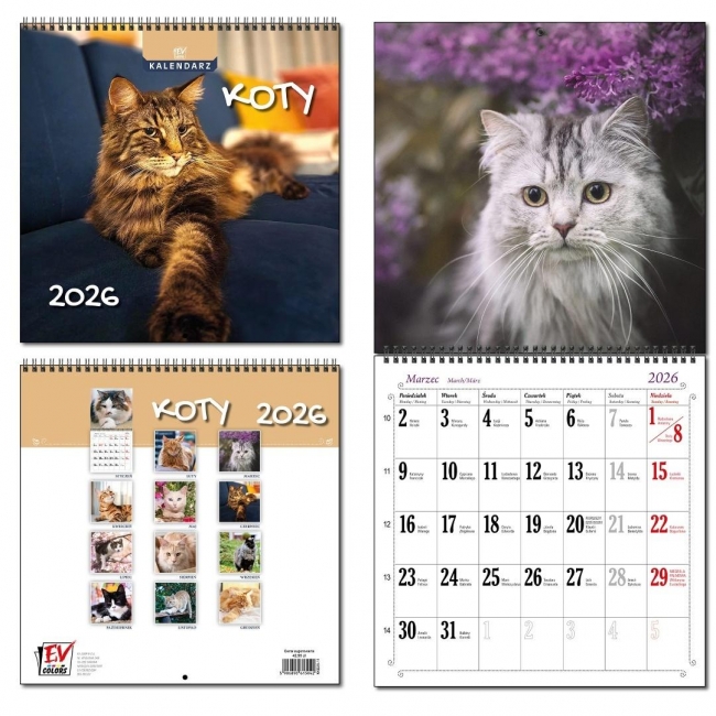Szczegóły: Kalendarz 2026 30x60 13 planszowy Koty