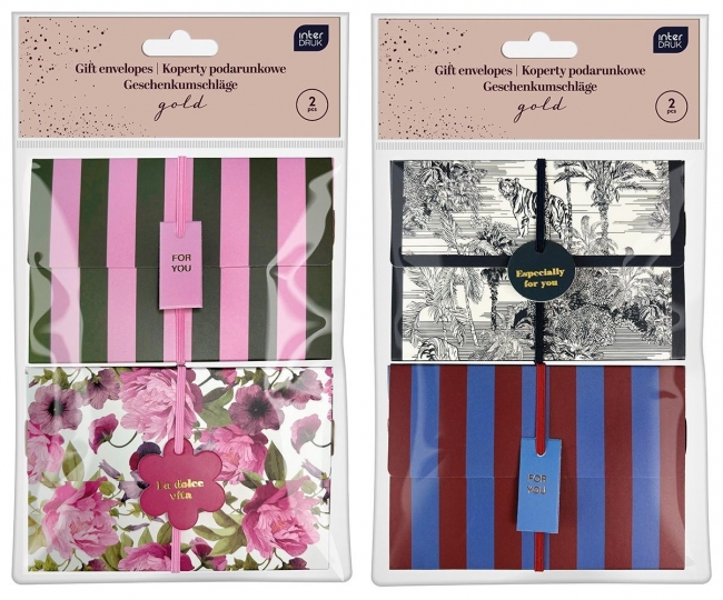Nazwa: Koperty podarunkowe z gumką 2szt gold mix