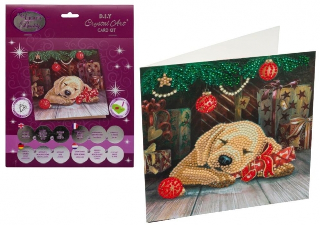 Zestaw Craft Buddy Crystal Art Śpiący szczeniak to urocza propozycja dla miłośników zwierząt i świątecznej atmosfery. Przedstawia słodkiego pieska odpoczywającego pośród prezentów i błyszczących bombek, tworząc ciepłą, domową scenę pełną spokoju i radości.