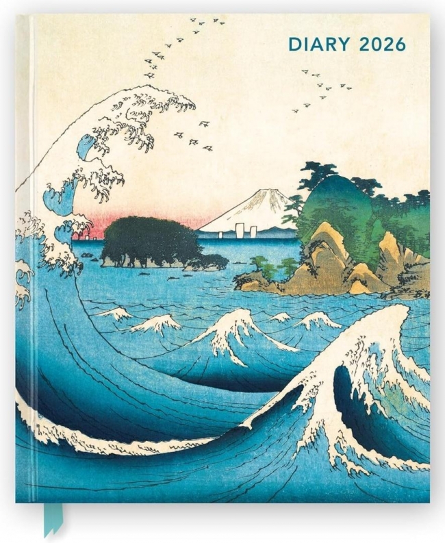 Terminarz tygodniowy na rok 2026, zatytułowany Japońskie Drzeworyty Japanese Woodblocks Desk Diary Planner, wydany przez Flame Tree. Motywem przewodnim są zachwycające reprodukcje klasycznych japońskich drzeworytów krajobrazy pełne surowych klifów, gór, wody i natury, przedstawione w harmonii barw i form.