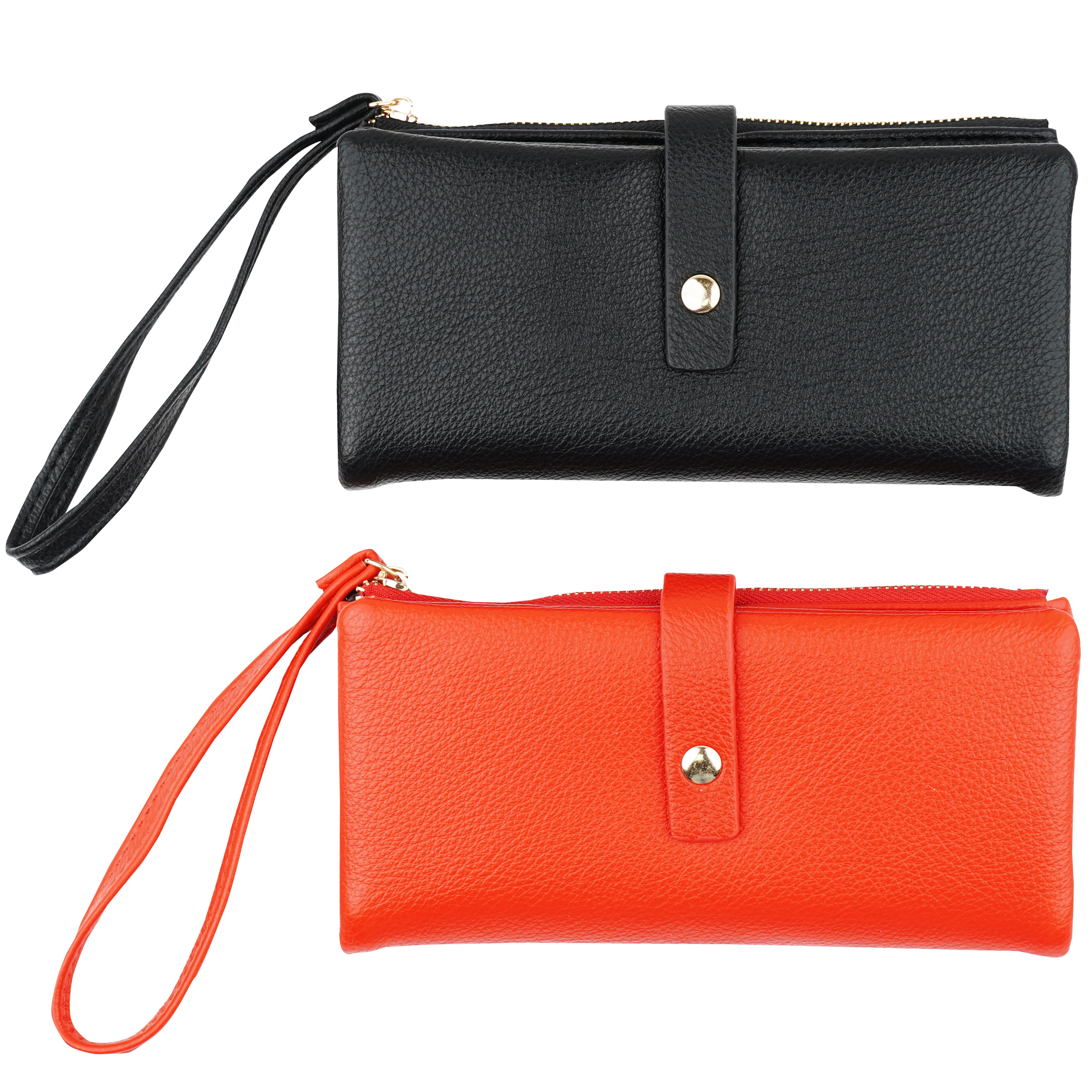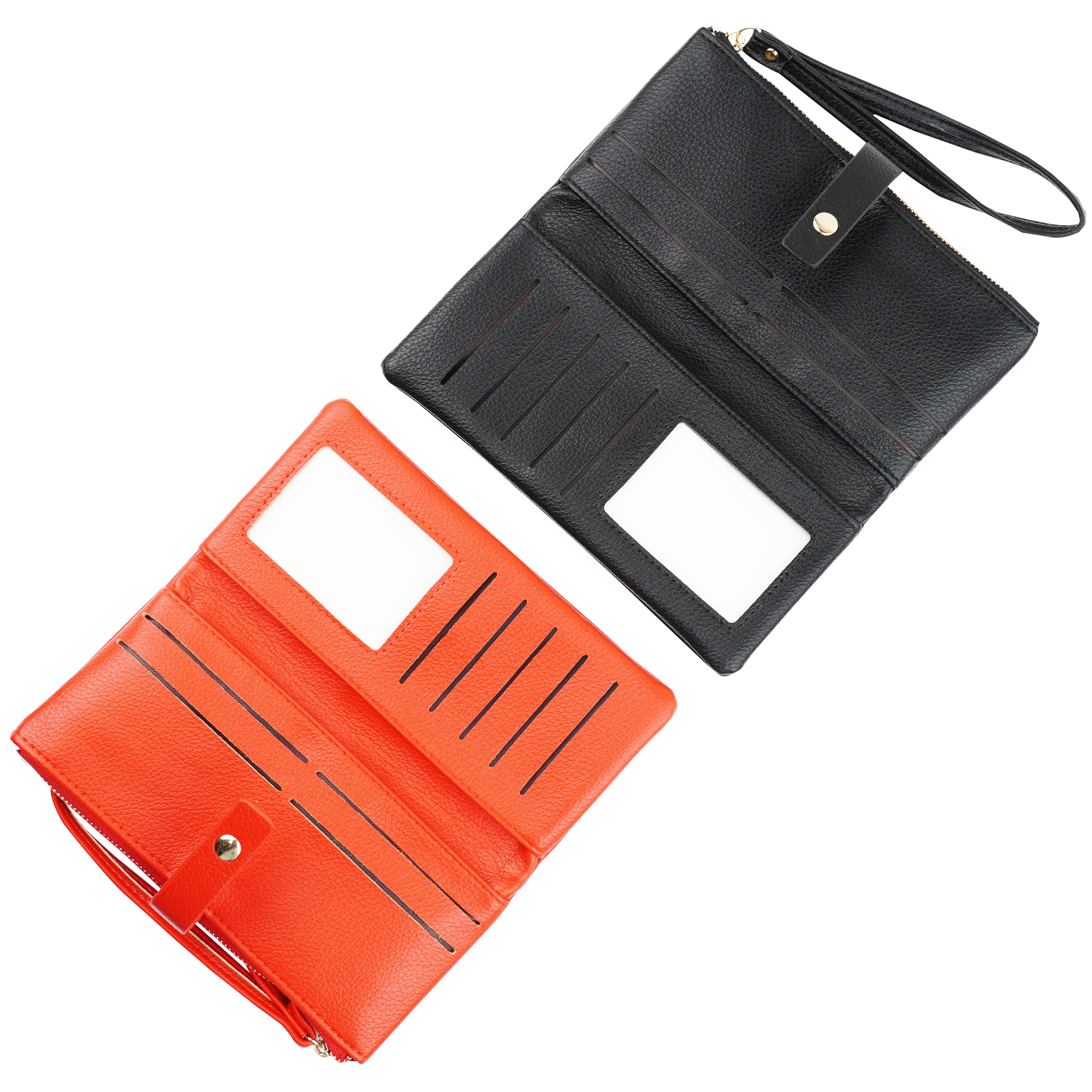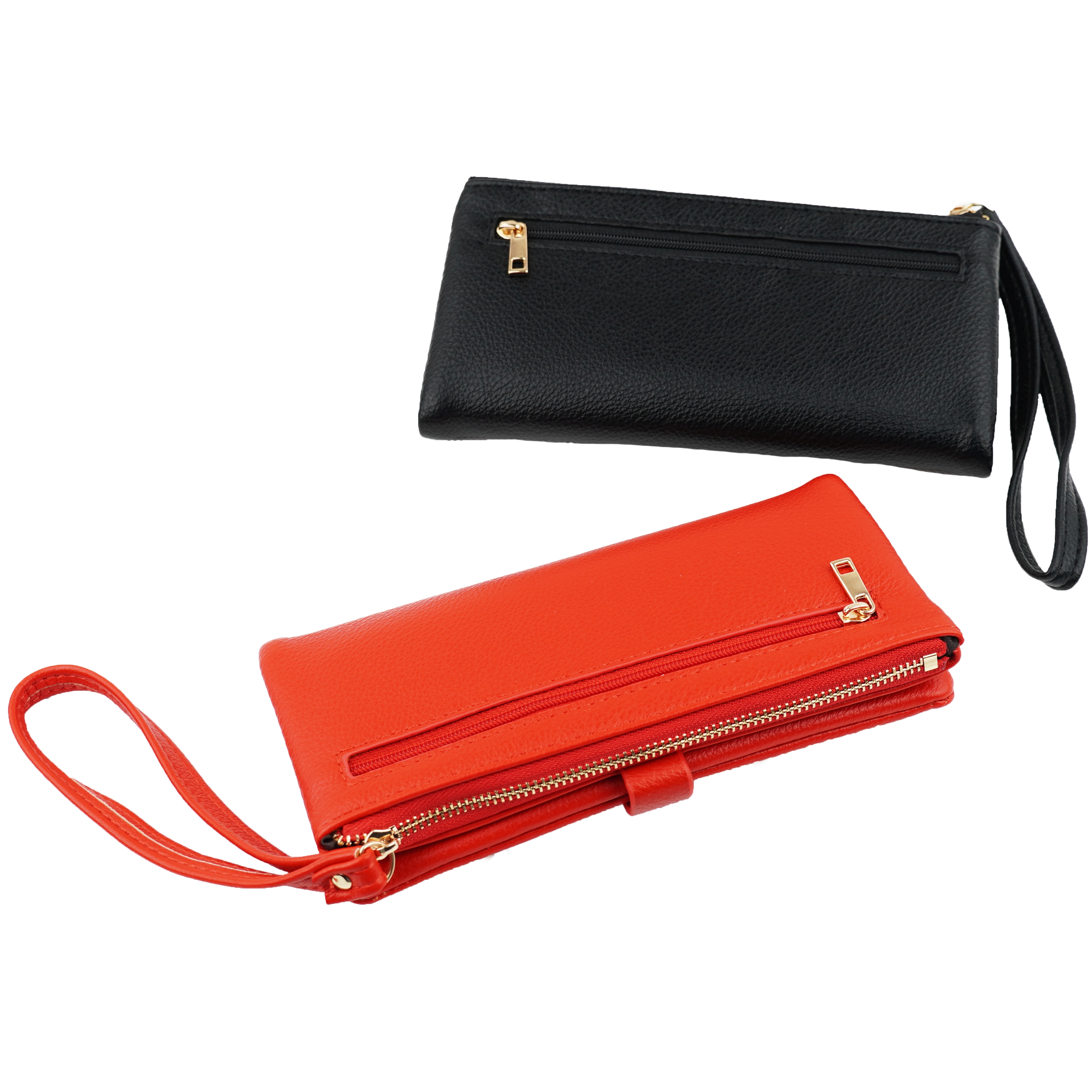 Damski portfel na pasku - posiada kilka przegródek na karty, dokumenty i banknoty, przeźroczyste miejsce na zdjęcie i osobną kieszonkę na drobne. Wykonany z materiału przypominającego wizualnie skórę.